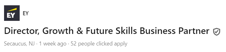 Both were posted a week ago. The AI Response Writer position stopped accepting applications within two days. The Director role at EY, which pays between $222,900 and $417,900 if you live in the New York area, has only received 52 applications as of the time I took this screenshot.