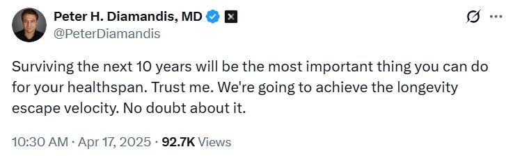 Peter Diamandis believes we'll achieve age reversal within the next decade. These aren't fringe scientists. They're serious innovators backed by serious money.